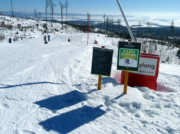 In Tatranská Lomnica gibt es keinen Snowpark. Es gibt aber die Fun Zone entlang der Piste Štart východ. Die Fun Zone mit den Wellen ist bei Familien und auch Anfängern sehr beliebt.