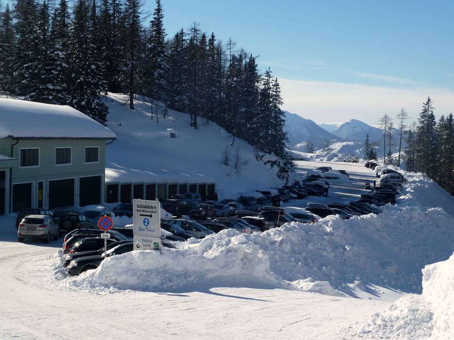 Man kann auch in Bad Mitterndorf parken und mit dem Skibus zur Mittersteinbahn fahren. Wer möchte kann auch die Tauplitzalm Alpenstrasse bis zur Mittersteinbahn fahren und dort parken. Mit gültigem Skipass entfällt die Maut. Weitere Parkplätze gibt es noch weiter die Tauplitzalmstraße hinauf am Hollhauslift.