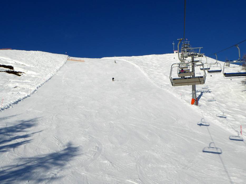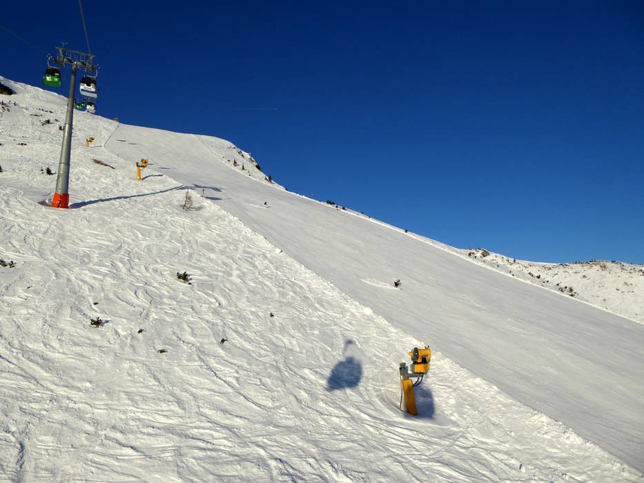 Die Piste führt neben der Mittersteinbahn (2. Sektion) steil talwärts.