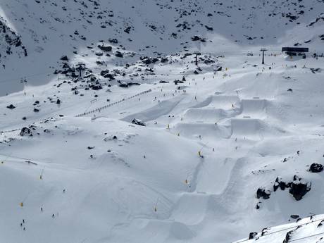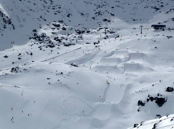Das Skigebiet The Remarkables bietet unter dem Namen Remarks Parks mehrere Snowparks, von leicht bis schwer, an der Sechsersesselbahn Sugar Bowl Express.