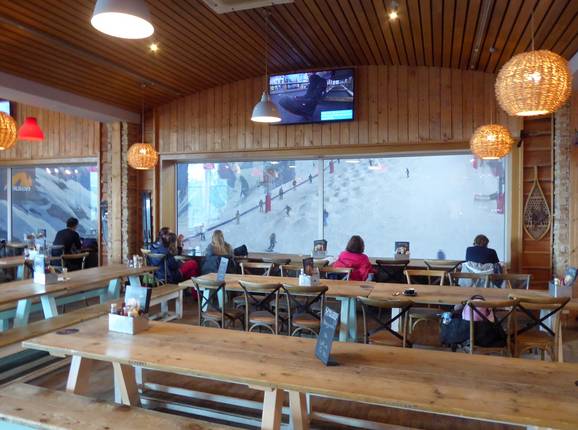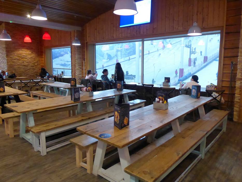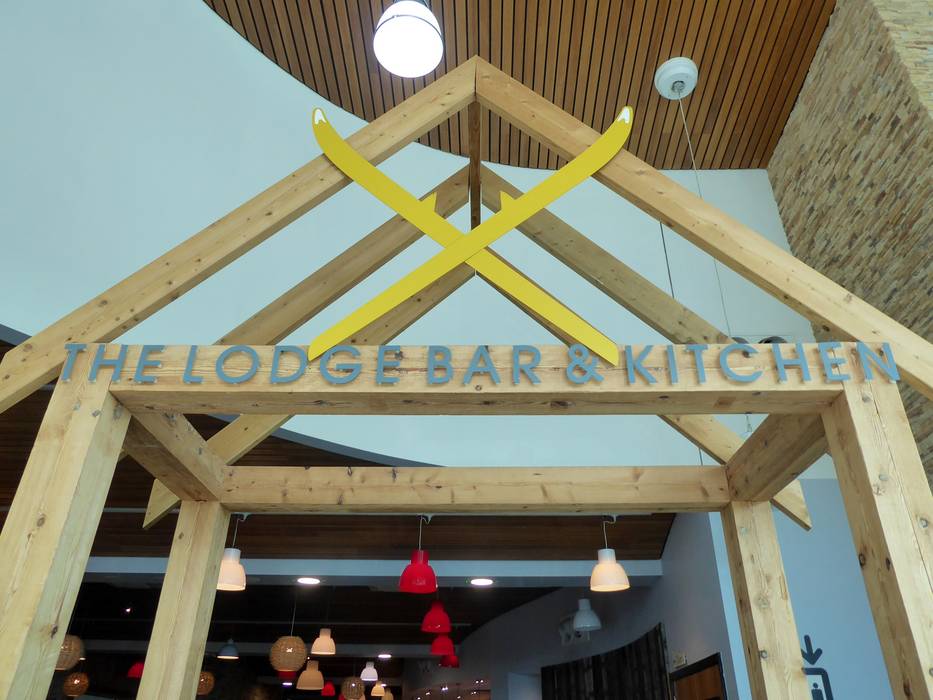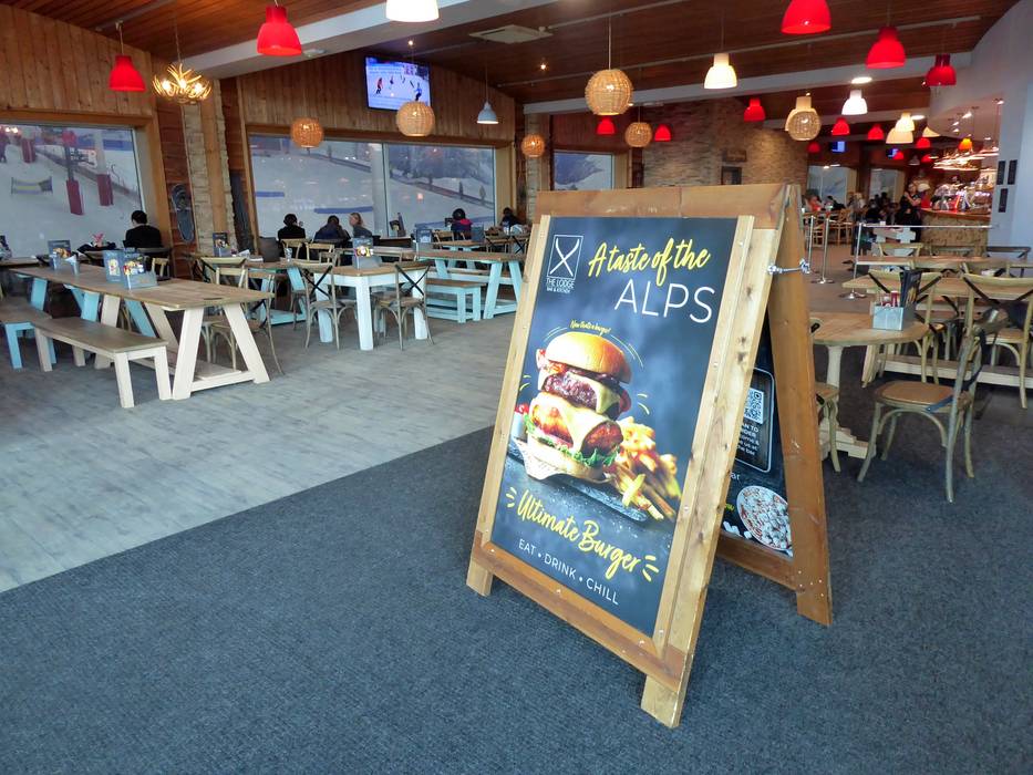 Direkt in der Skihalle The Snow Centre befindet sich die The Lodge Bar & Kitchen. Von der Bar und dem Restaurant hat man einen herrlichen Blick auf die Pisten.