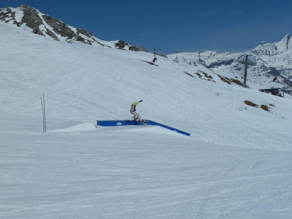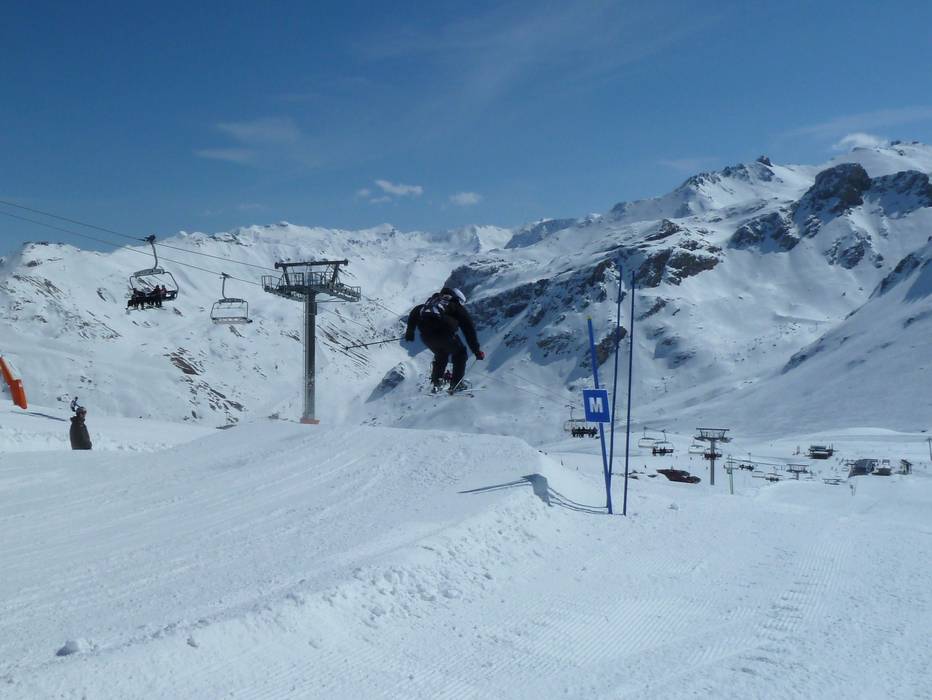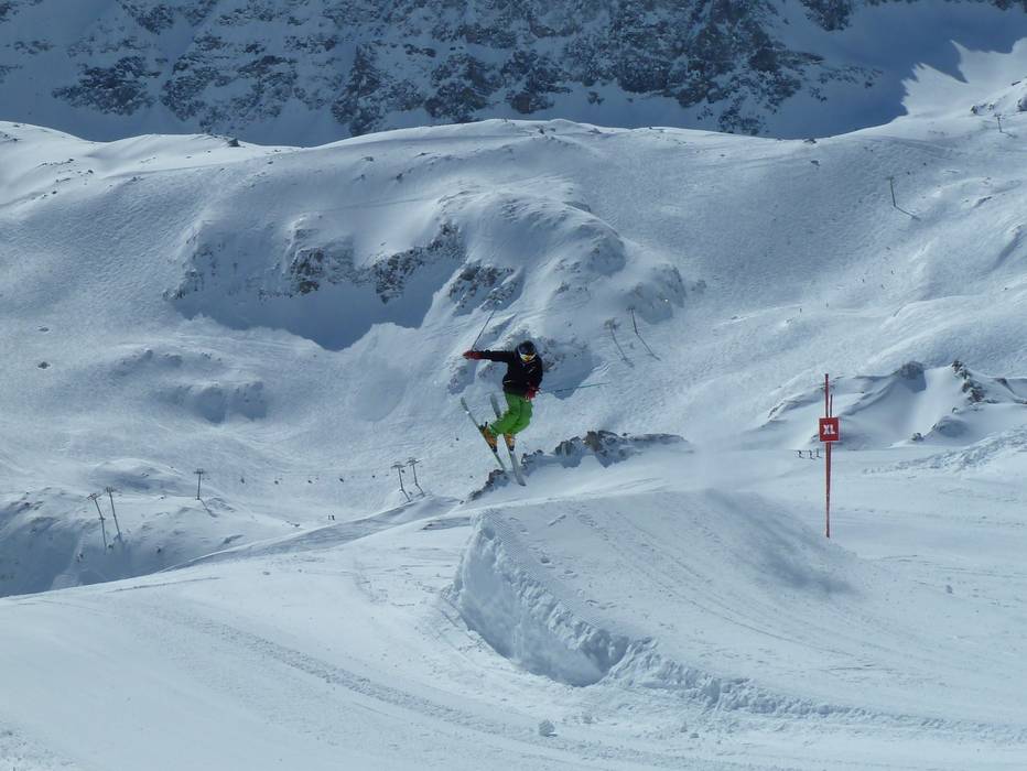 Großer Snowpark an der Sesselbahn Mont Blanc sowie an den Tellerliften Slalom und Snowpark (Val d´Isère). Der erstklassige Park bietet vom Anfänger bis zum Pro sehr viele Jumps und Obstacles.