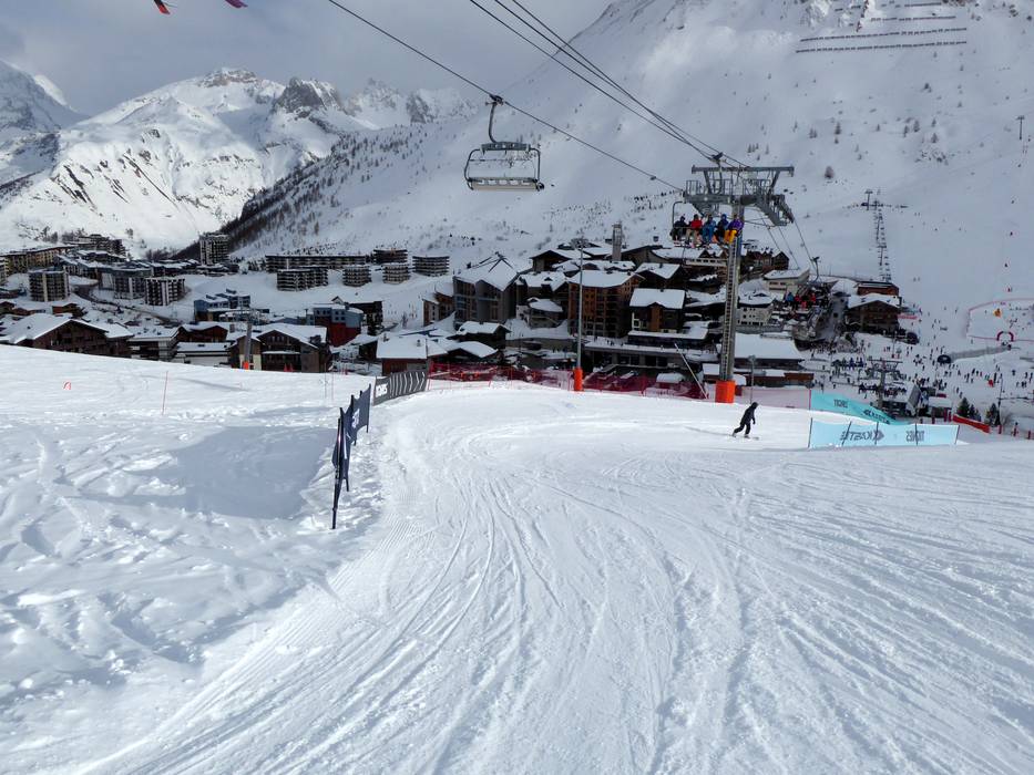 Der Parallelslalom und der lustige Parcours befinden sich im unteren Bereich der 6er Sesselbahn Palafour in Tignes Le Lac.