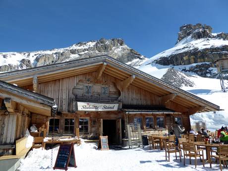 In der urigen Skihütte Stand wird man mit Schweizer Spezialitäten verwöhnt. An kalten Tagen wärmen die Kachelöfen die Wintersportler. Bei schönem Wetter lockt die Sonnenterrasse mit einem herrlichen Blick auf den Titlis-Gletscher.