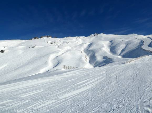 Im Skigebiet Treble Cone gibt es keinen Snowpark. Im Saddle Basin warten allerdings einige natürliche Halfpipes. Hier toben sich die Freestyler aus.