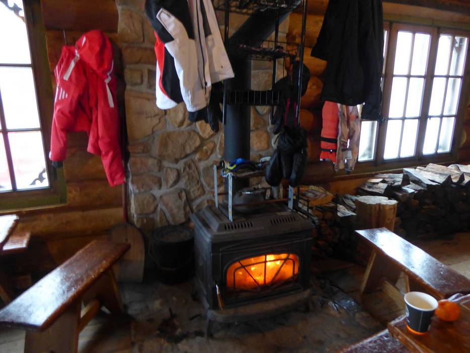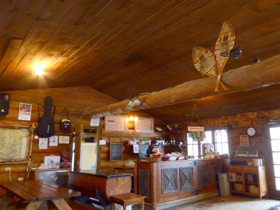 Das Le Refuge du Trappeur ist eine urige Holzhütte mit offenem Kamin. Es werden Getränke und kleine Snacks serviert. Bei schönem Wetter kann man auch im Liegestuhl vor der Hütte sitzen.
