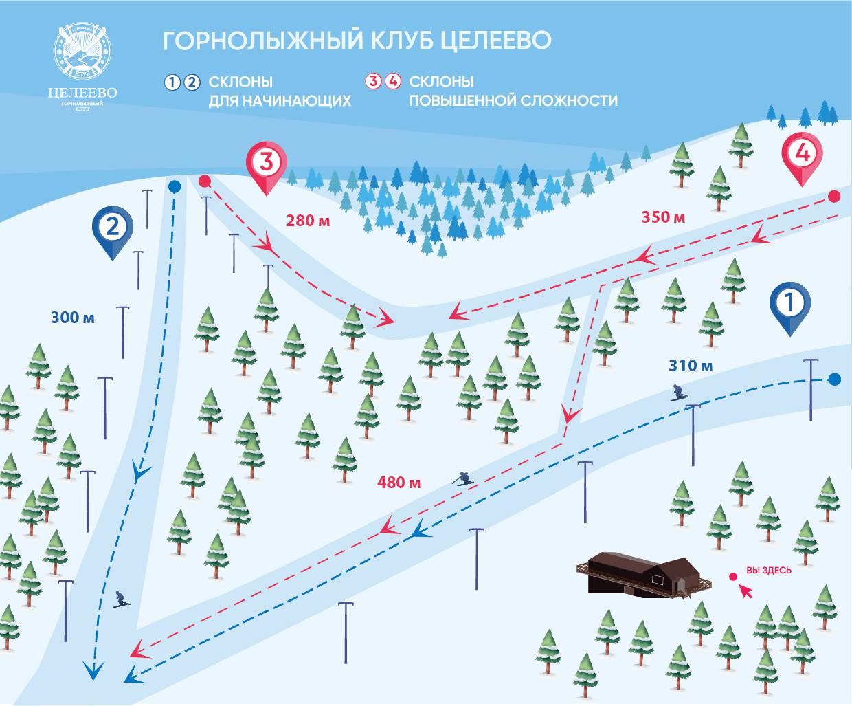 Dedenevo (Деденево) (4 km), Tseleevo (Целеево) (5 km) Orte am Skigebiet