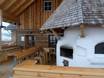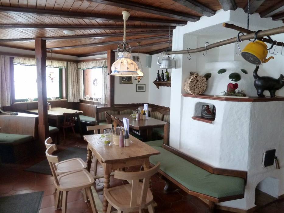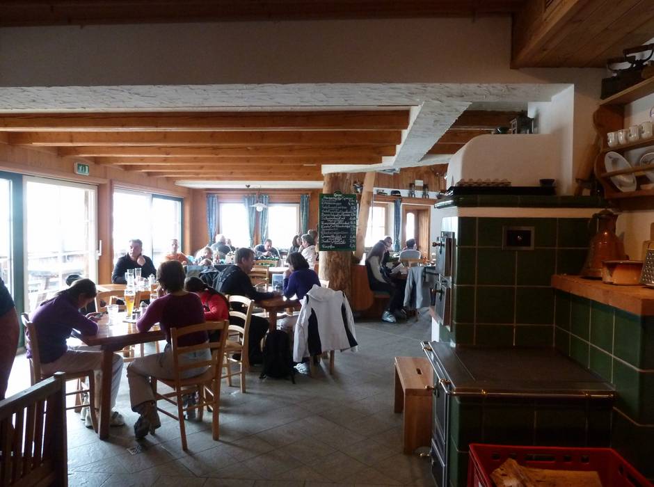Gemütliche Hütte mit Kachelofen und als Spezialität gibt es Zirbenschnaps.