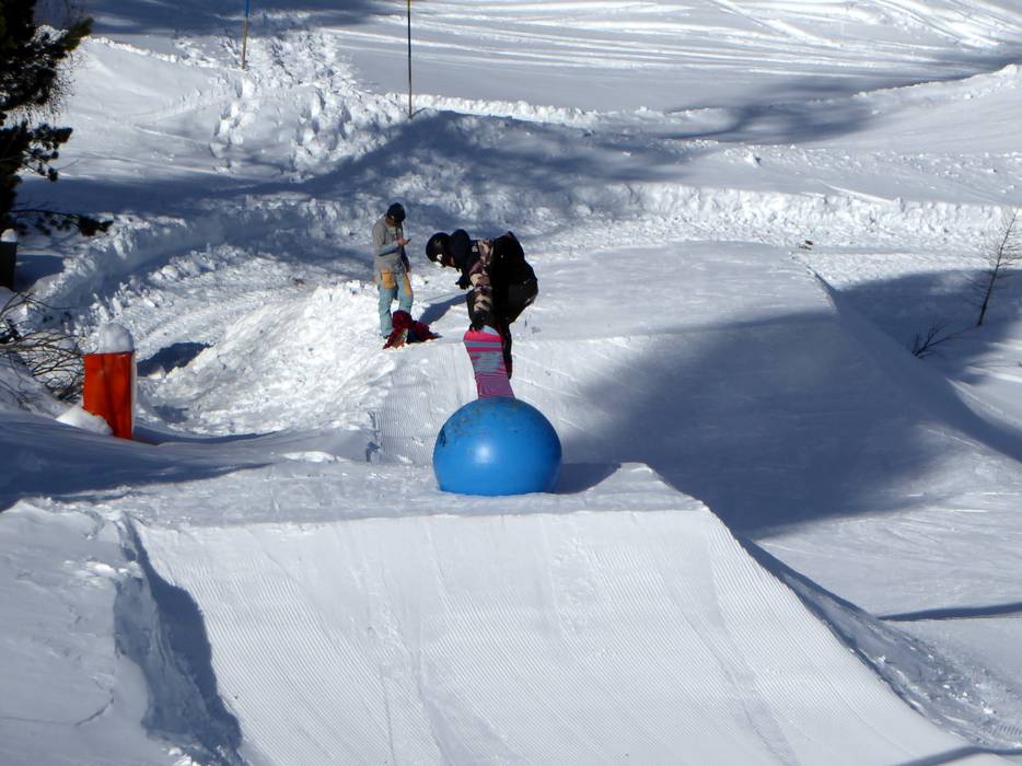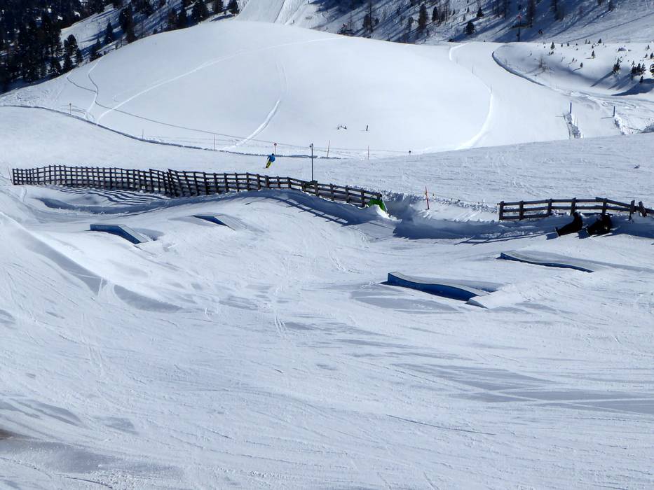 Die Funslope verläuft parallel zum Snowpark. Mit Wellenbahnen, Sprüngen, Steilkurven, Hindernissen, Tunnels und einer Doppelschnecke ist Spaß für jedermann garantiert.