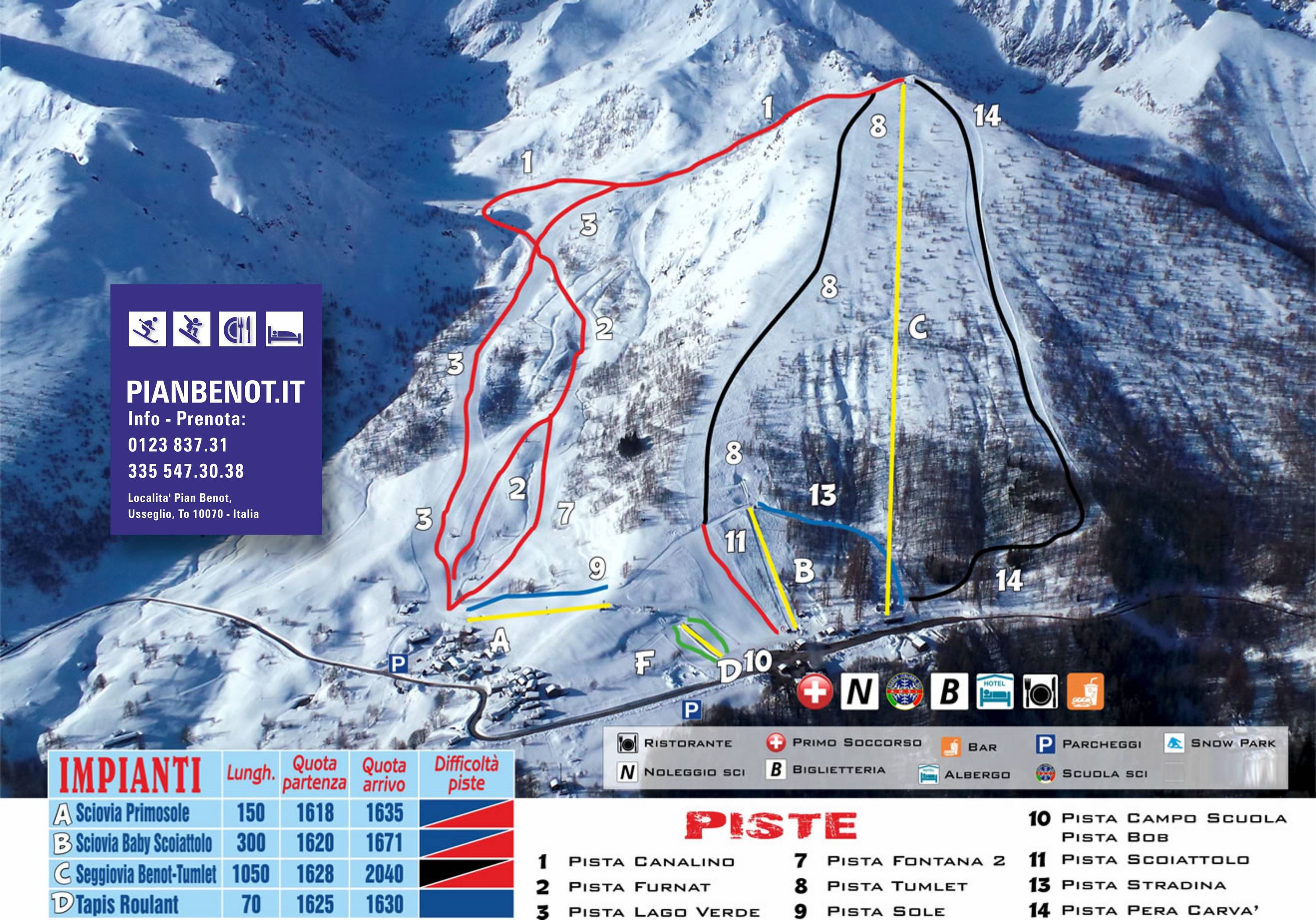 Pistenplan vom Skigebiet Usséglio – Pian Benot