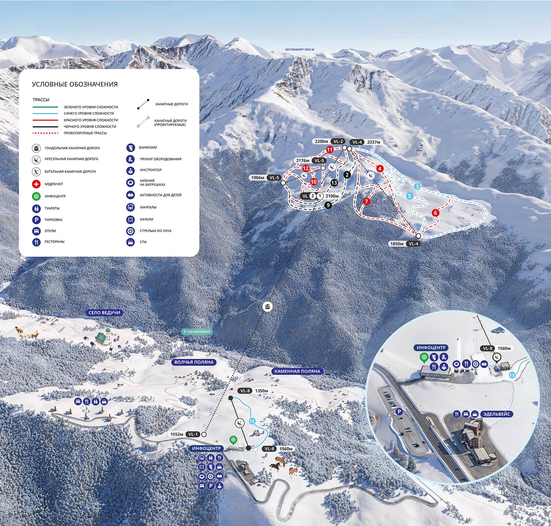 Veduchi (Ведучи) (0,6 km), Itum-Kale (Итум-Кале) (8 km) Orte am Skigebiet