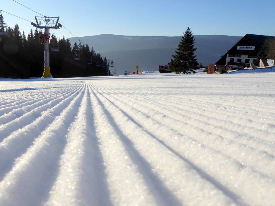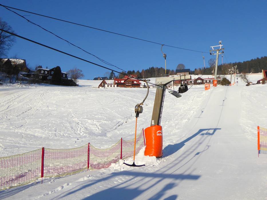 Blick von der Bergstation Velká Úpa Leichte Piste im Skigebiet Velká Úpa Blick über das Skigebiet Velká Úpa Mittelschwere Piste in Velká Úpa Mittelschwere Piste in Velká Úpa Mittelschwere Piste in Velká Úpa Leichte Piste in Velká Úpa Leichte und mittelschwere Pisten in Velká Úpa Portášky - 3er Sesselbahn fix geklemmt Modřín - Schlepplift mit T-Bügel/Anker Hofer - Schlepplift mit T-Bügel/Anker Schneekanonen im Skigebiet Velká Úpa Sehr gute Pistenpräparierung in Velká Úpa Informationstafel an der Talstation Übungspiste im Skigebiet Velká Úpa Bild Velká Úpa