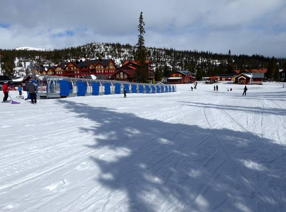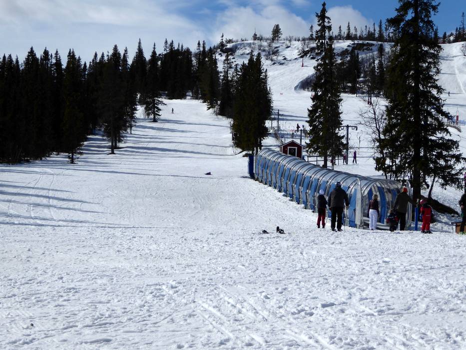 Direkt an der Talstation Skalspasset befindet sich ein überdachtes Förderband mit leichter Piste. Es liegt etwas abseits der Pisten und somit können sich die Kleinen hier in sicherer Umgebung austoben.