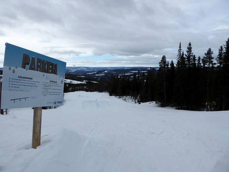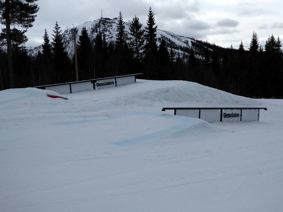 Das Skigebiet Vemdalsskalet bietet einen schönen Snowpark am Parkliften.