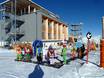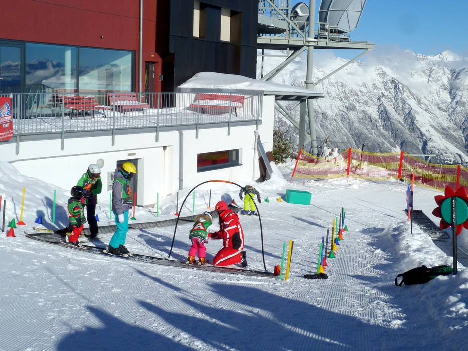 Das Bobo Kinderland befindet sich direkt am Gipfel des Venets. Hier können die Kleinen sicher das Skifahren erlernen. Zum Mittagessen geht es in einen extra Bereich im Panoramarestaurant.