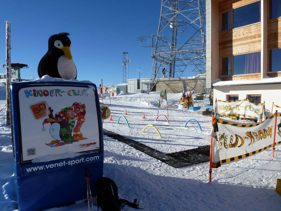 Direkt an der Bergstation der Venetbahn liegt der Tobi's Kinderpark. Tobi, die kleine Krähe, passt auf die Kleinen auf. Hier können sie am SunKid-Förderband sicher und mit viel Spaß das Skifahren erlernen. Es warten lustige Figuren und zum Mittagessen geht es in Tobi's Kindergarten.