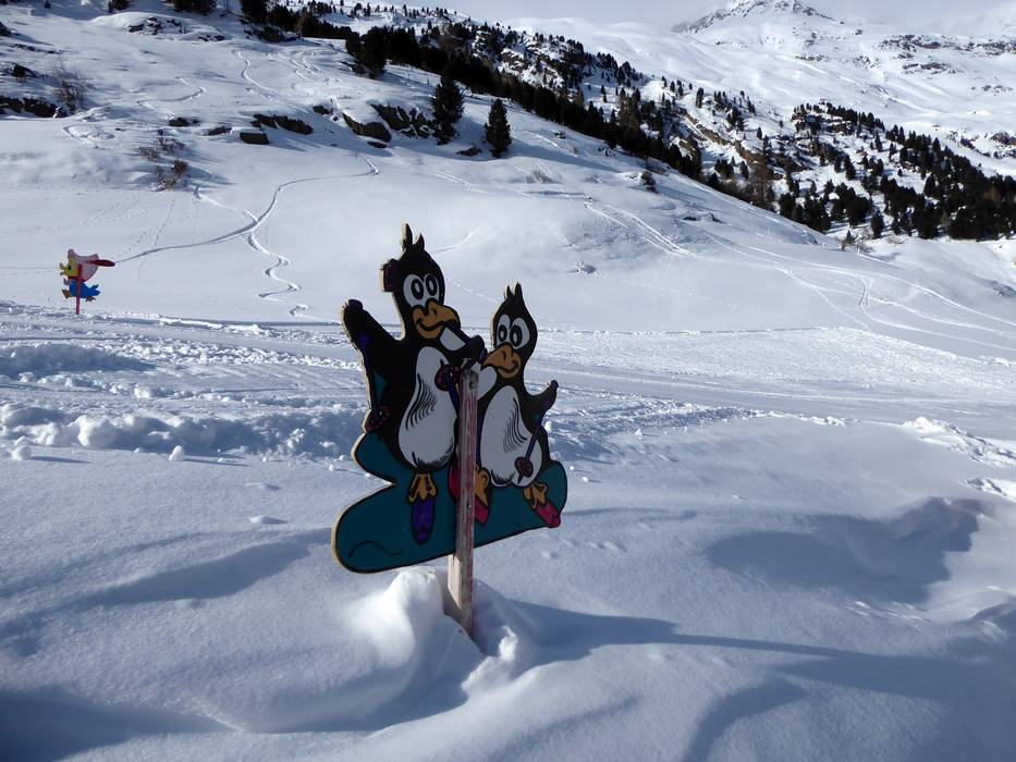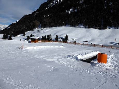 Das Kinderland der Schischule Vent befindet sich am Ortseingang von Vent. Hier können die Kleinen an zwei Förderbändern die ersten Versuche üben. Es gibt lustige Figuren und bunte Hütchen.