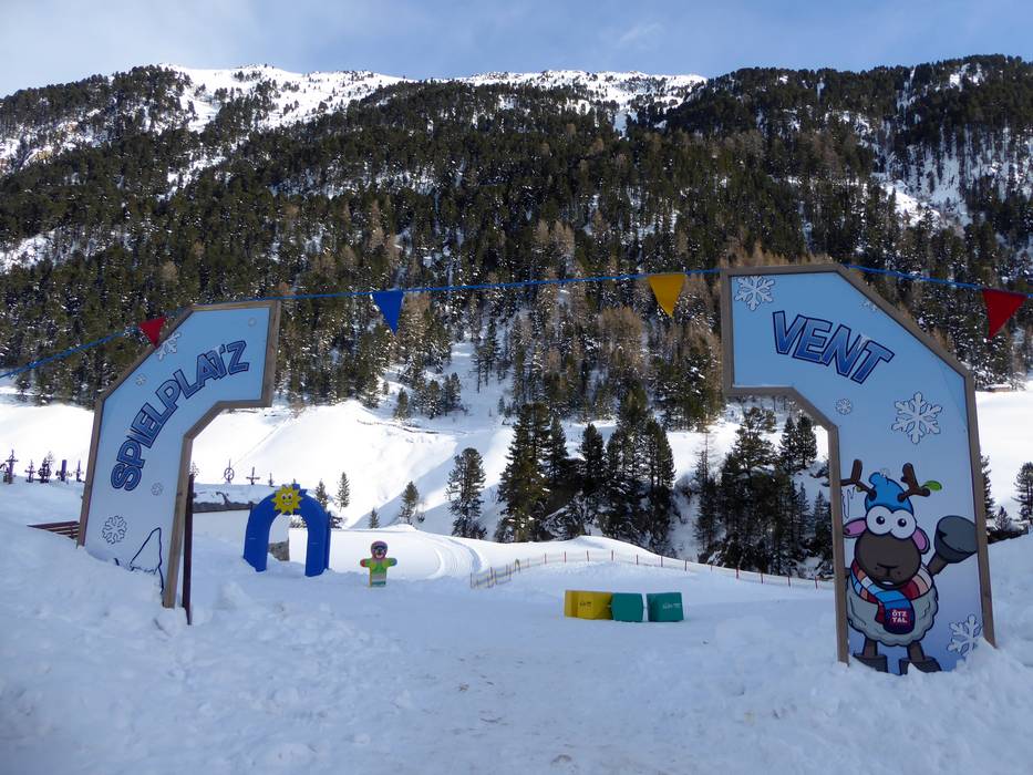 Der Venter Schneespielplatz befindet sich mitten in Vent neben der Kirche. Hier können sich die Kleinen austoben. Für die Eltern stehen Bänke und Wellnessliegen bereit.