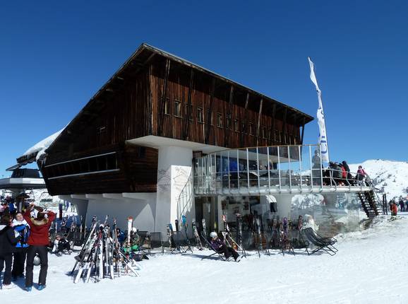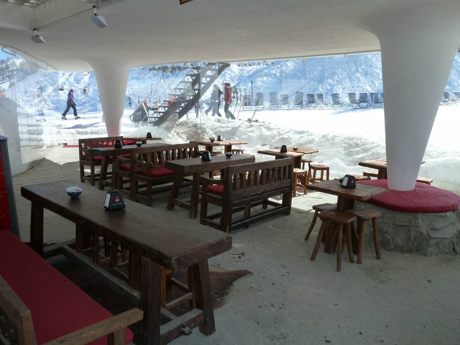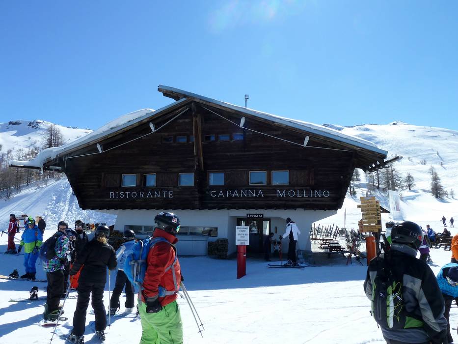 Die Capanna Mollino bietet im Erdgeschoss einfache Snacks und Gerichte - im Obergeschoss kann man sich aber verwöhnen lassen. In den Genuss kommen vor allem die Gäste des Club Med, dem die Hütte gehört, aber bei freien Kapazitäten können auch andere Gäste hier speisen.