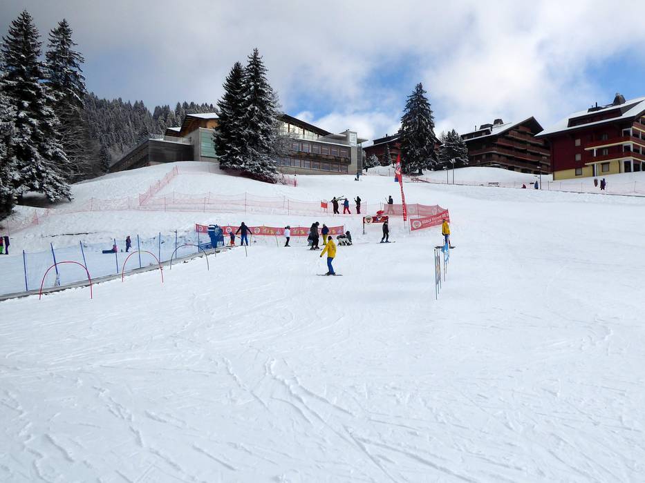 Mitten in Villars gibt es ein komplett kostenfreies Übungsgelände mit mehreren Förderbändern. Hier können Kinder und Anfänger ganz in Ruhe die ersten Schwünge üben.