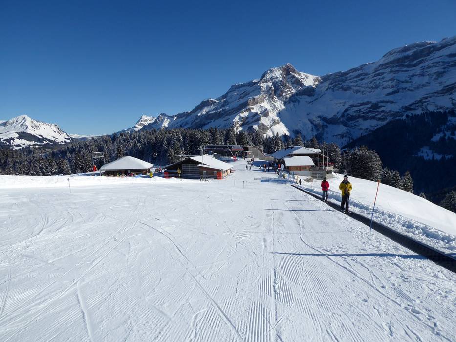 An der Talstation in Les Diablerets auf rund 1200 m betreibt die Ecole Suisse de Ski & Snowboard Les Diablerets ein tolles Kinderland mit Förderband und mehreren Seilliften.
