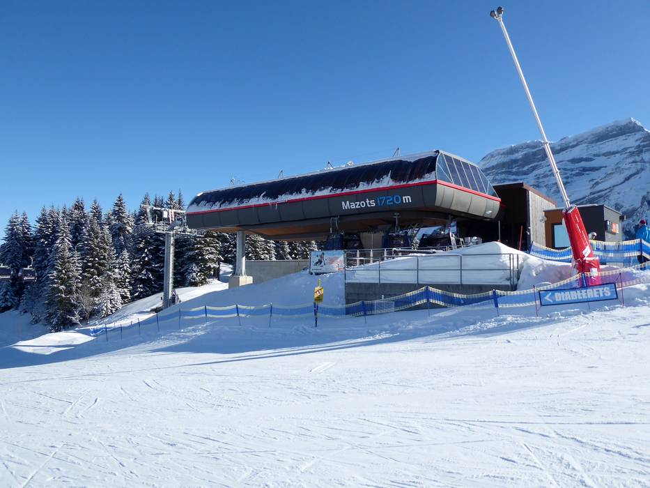 Die neue 10er-Gondelbahn Diablerets Express ersetzt den 4er-Sessellift Vioz-Mazots und den Schlepplift Jorasse. Die Talstation der neuen 10er-Kabinenbahn befindet sich nun direkt am Ortsrand von Les Diablerets. Dank der neuen Liftanlage wird die Beförderungskapazität auf der Strecke um rund 70% erhöht.