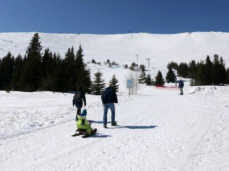 In der Nähe der Bergstation der Gondelbahn stehen viele Übungslifte zur Verfügung: Förderband, Tellerlifte sowie weitere separat betriebene Seillifte, die nicht im normalen Skipass enthalten sind. Skischulen stehen für die Betreuung der Kinder bereit.