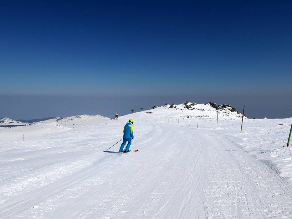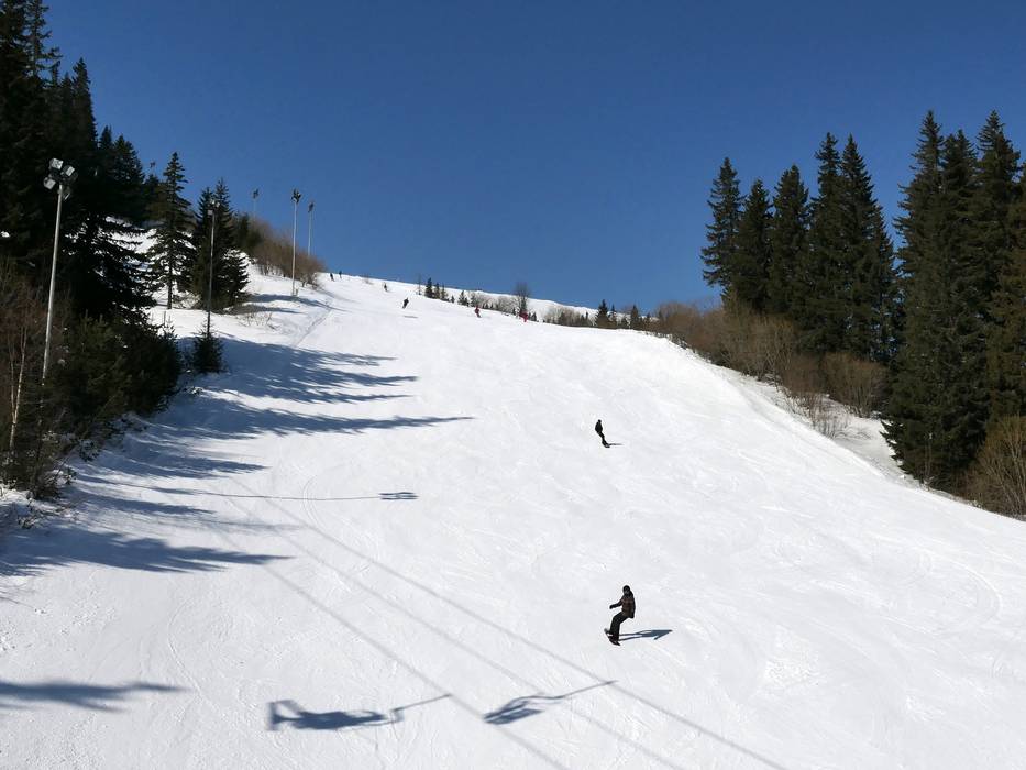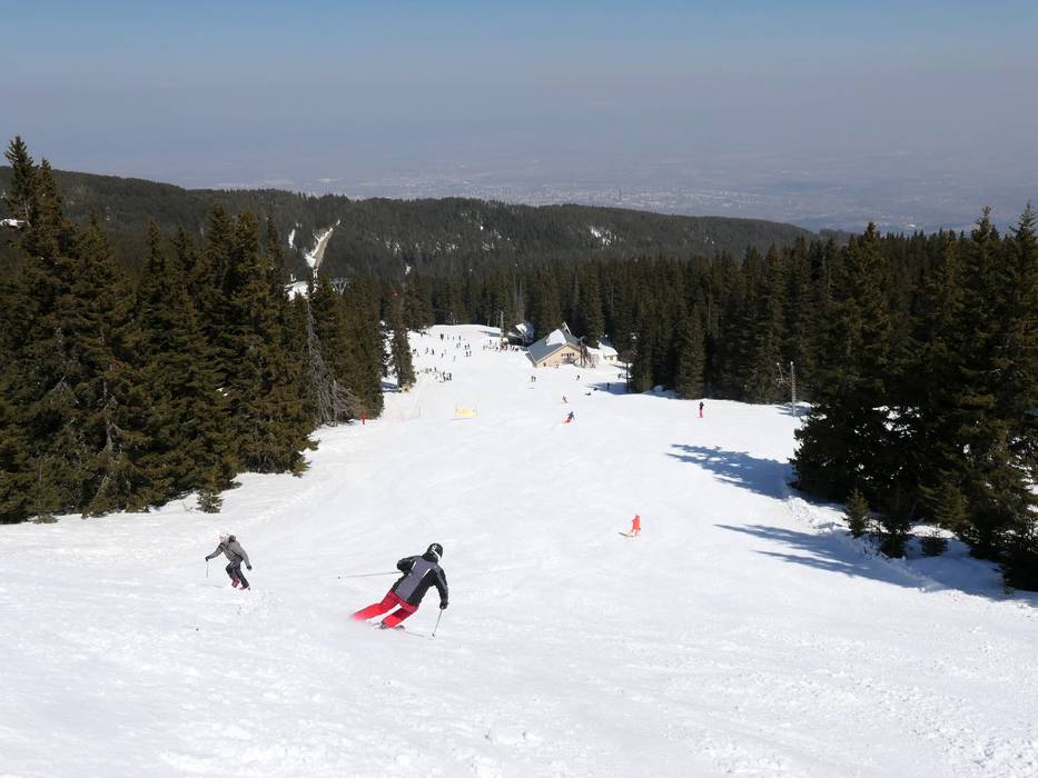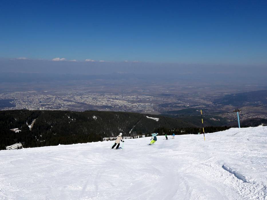 Mittelschwere Piste mit Blick auf Sofia und älteste Piste im Skigebiet