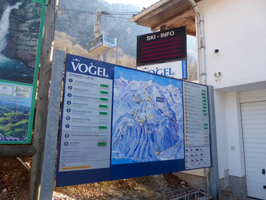 Das Skigebiet Vogel liegt im Triglav National Park in den Julischen Alpen. Von Ukanc im hinteren Teil des Bohinj (Wocheinertal) mit dem gleichnamigen See befördert eine Gondelbahn die Gäste auf 1540 m ins Wintersportgebiet. Hier erschließen Sessel- und Schlepplifte die Pisten zum Skifahren und