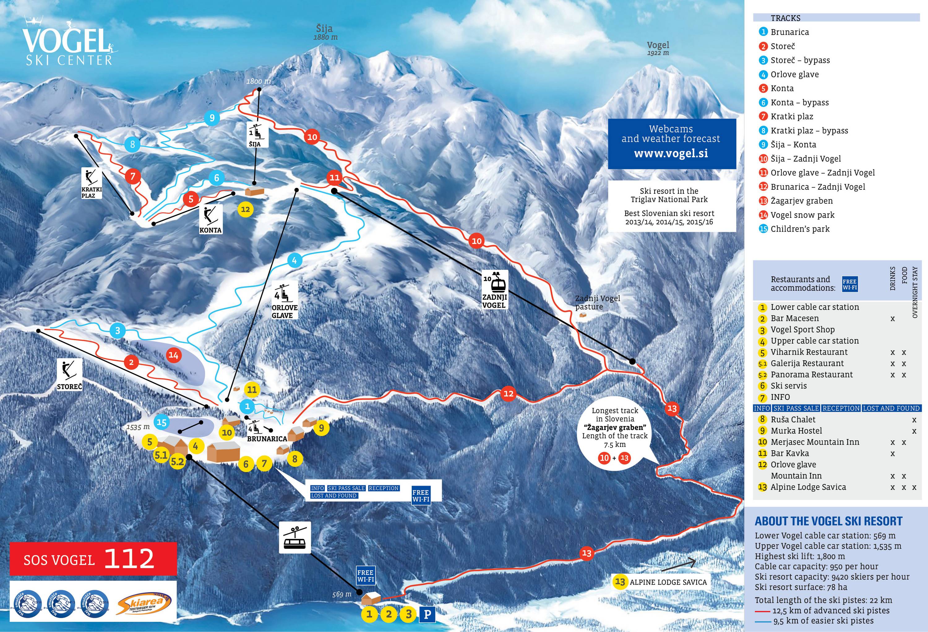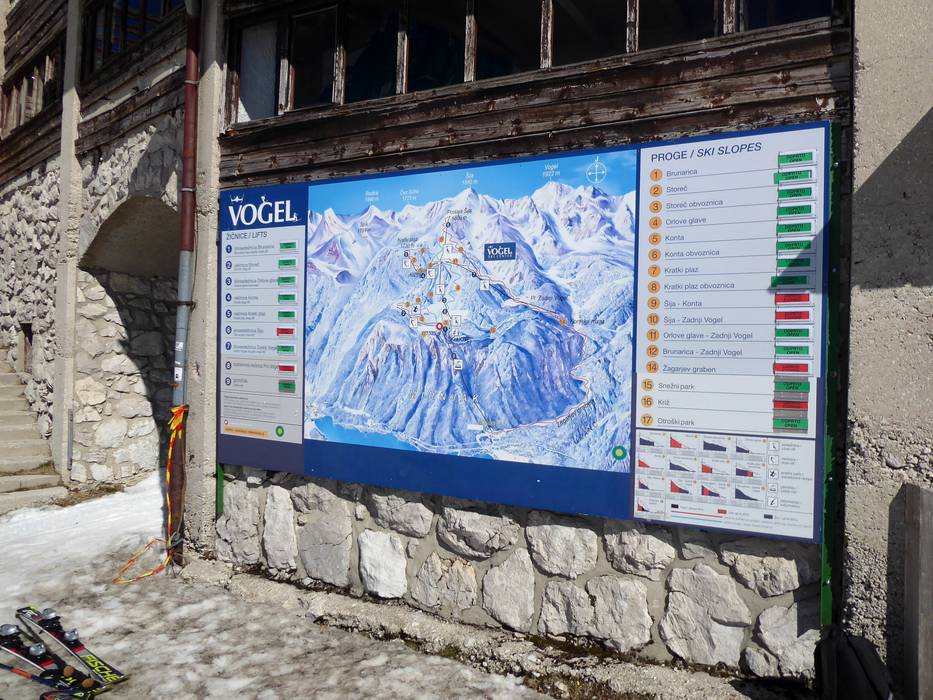 Orientierung (Pistenplan, Informationstafeln, Ausschilderung) und Sicherheit im Skigebiet Vogel – Bohinj