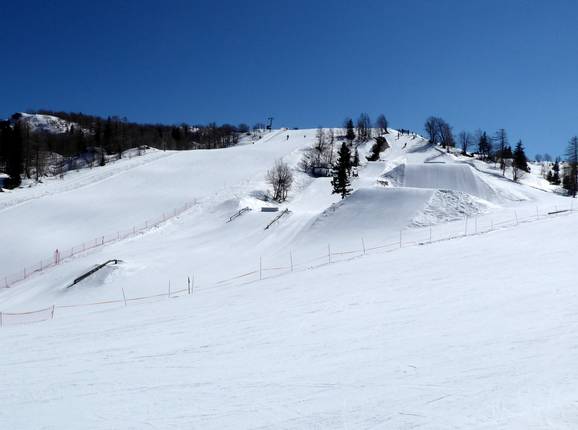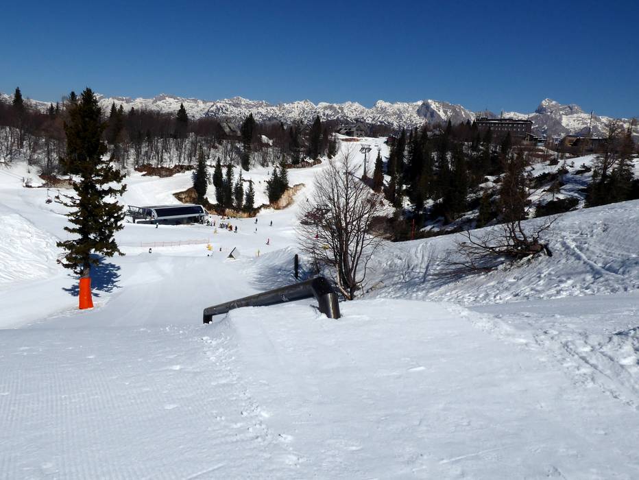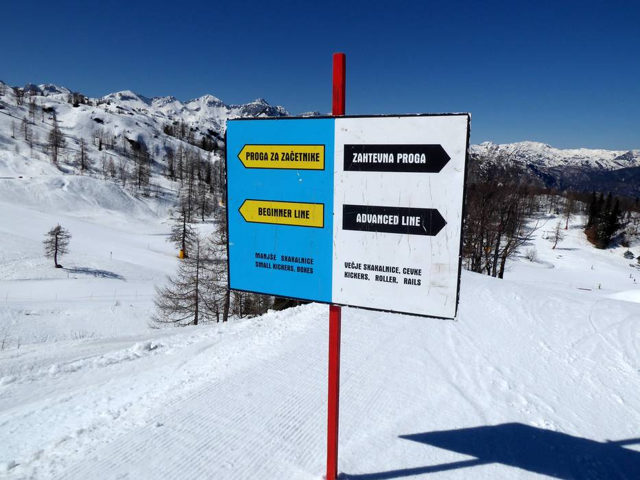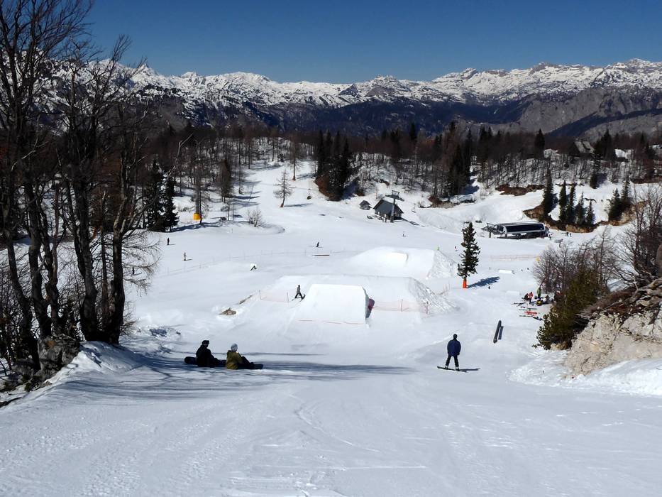 Das Skigebiet Vogel bietet einen schönen Snowpark und einen kleinen Ski Cross Track/Boardercross.