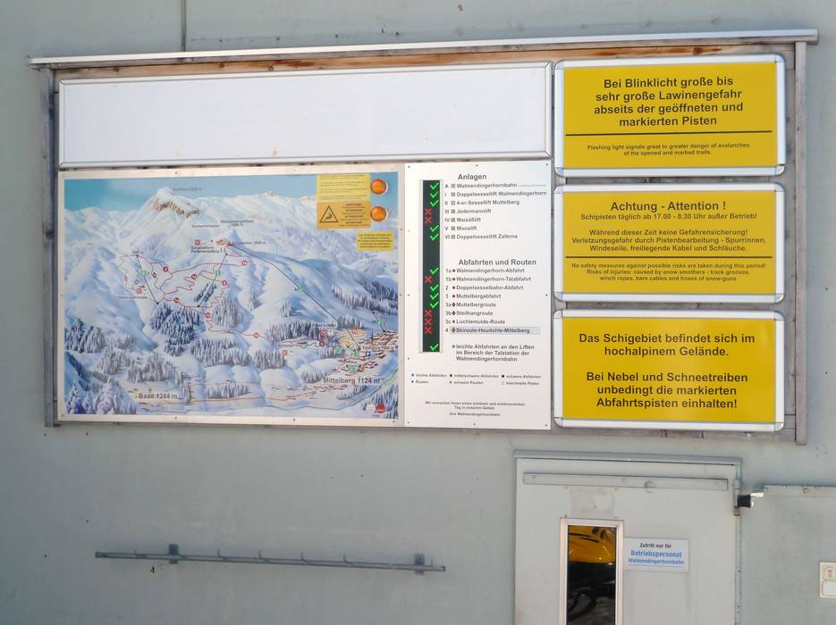 Orientierung (Pistenplan, Informationstafeln, Ausschilderung) und Sicherheit im Skigebiet Walmendingerhorn/Heuberg – Mittelberg/Hirschegg
