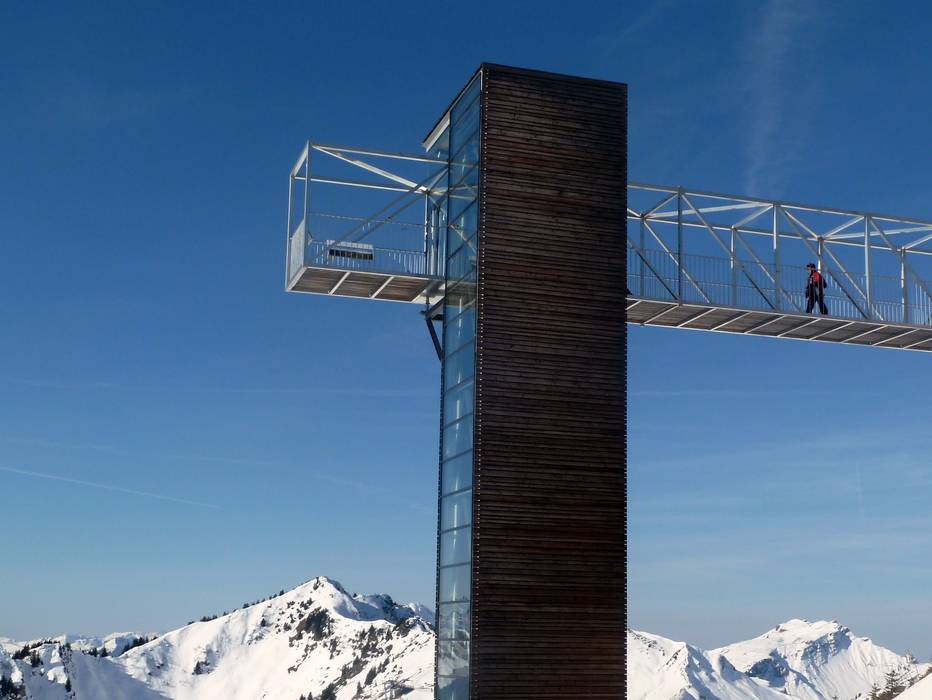 Der Panoramaaufzug am Walmendingerhorn Das Wahrzeichen am Walmendingerhorn Blick auf das Walmendingerhorn