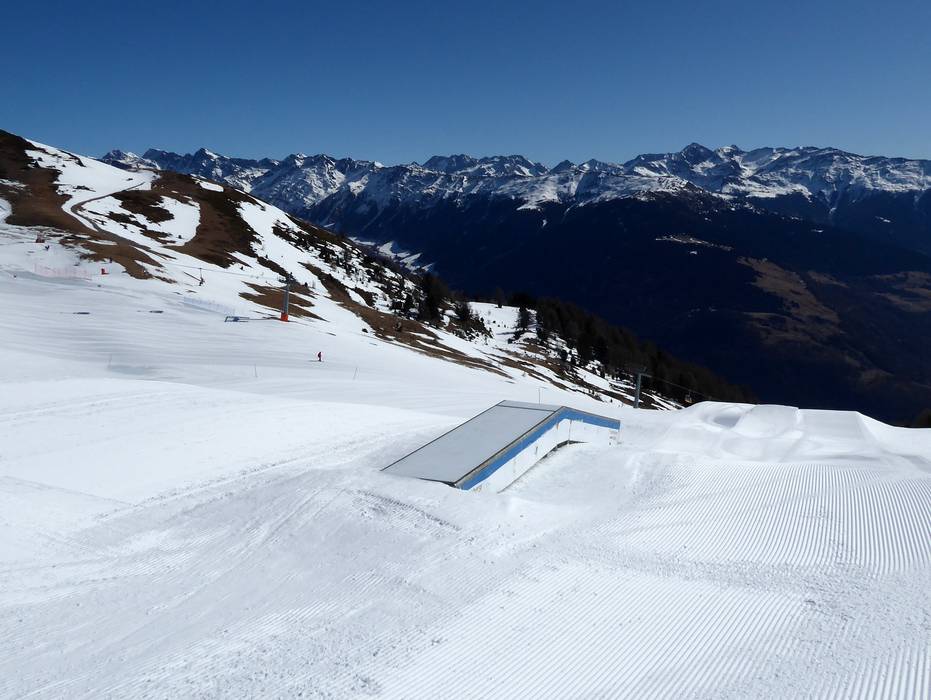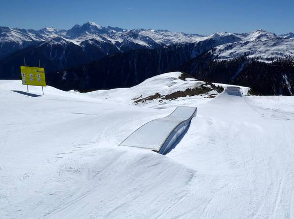 Der Snowpark am Erlebnisberg Watles bietet ein tolles Setup für Anfänger und Könner. Der Funpark kann mit der oberen Vierersesselbahn bequem erreicht werden. Zudem bietet der Park einen herrlichen Blick auf den Vinschgau.