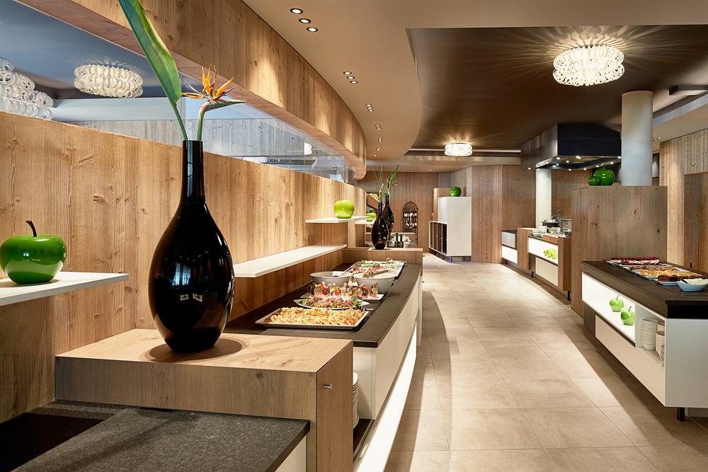 Am Morgen lockt das Frühstücksbuffet mit allen erdenklichen Gaumenfreuden. Jeden Nachmittag von 13.30 bis 16.00 Uhr wartet das Vital-Buffet mit leichten Vorspeisen, schmackhaften Suppen, Snacks, italienischen Antipasti, Salaten, hausgemachten Kuchen, Desserts und vielen herzhaften Leckereien. Am Abend wartet ein Gourmet-Menü auf die Gäste mit täglich wechselndem Salatbuffet und exklusiven Käsebrett.