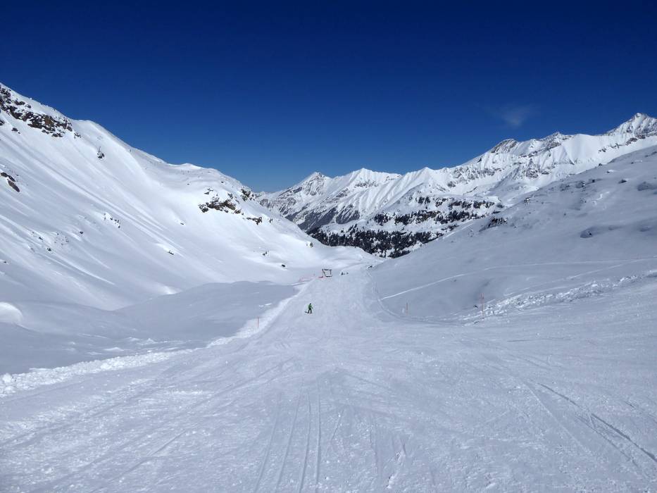 Die Talabfahrt ist als Skiroute markiert und führt bis zum Enzingerboden. Entlang des Grünsees ist die Abfahrt sehr flach und wird dann mittelschwer.