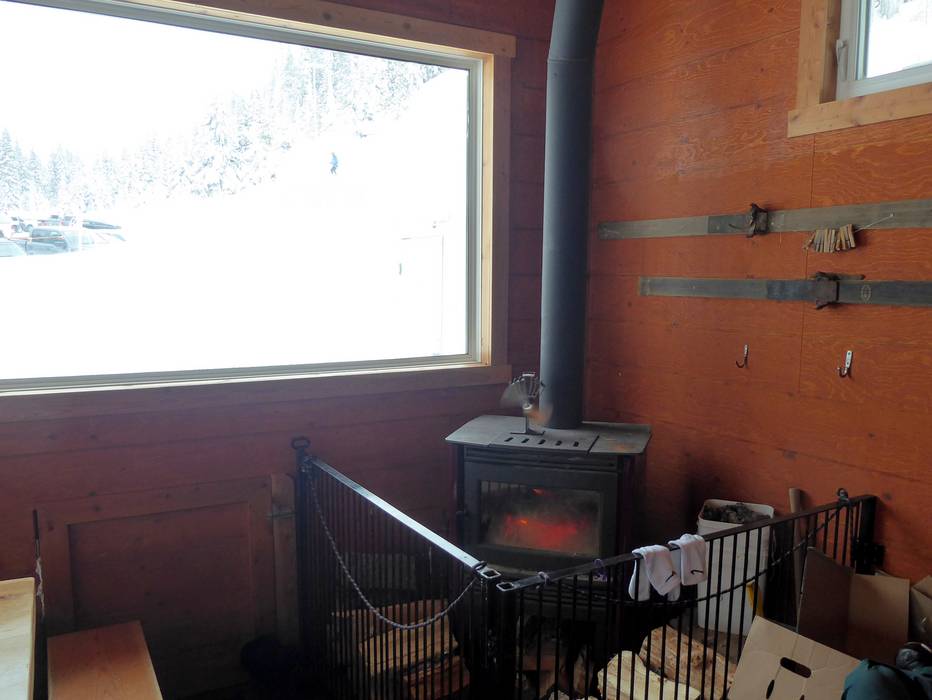 Die urige Holzhütte mit offenem Kamin bietet Frühstück und Mittagessen. Ideal an kalten Tagen um sich aufzuwärmen und bei schönem Wetter kann man auch vor der Hütte sitzen.