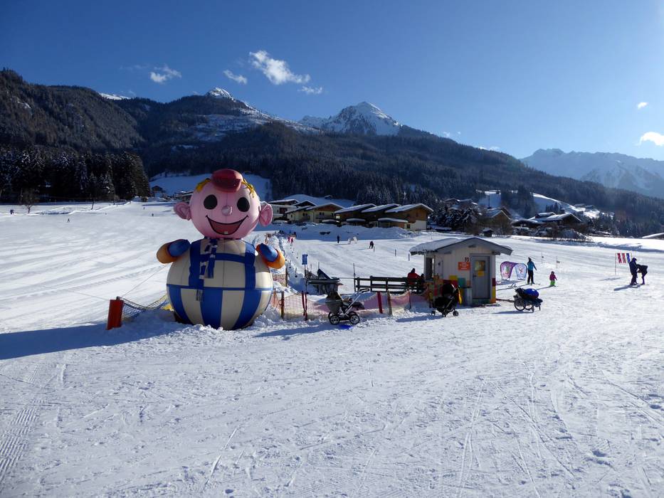 Das Kinderland mit Snow-Tubing befindet sich beim Wennsergletscher in Bramberg. Hier gibt es einen eigenen Übungslift, Wellenbahnen, Slalom und lustige Figuren. Die Eltern können von der Skihütte den kompletten Hang einsehen.