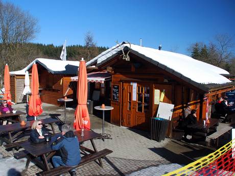 Die über das gesamte Skigebiet verteilten Skihütten bieten überwiegend verhältnismäßig einfach Imbissküche (Pommes, Schnitzel, Bratwurst, Erbsensuppe, Spaghetti und für die holländischen Gäste natürlich Frikandel) in rustikaler Atmosphäre. Das SB-Thekenkonzept dominiert und bewährt sich als Garant für längere Wartezeiten. Häufig geht es zu den Stoßzeiten sehr eng zu und das beherrschende Odeur ist Frittenfett. Der Apfelstrudel wird schon mal in der Mikrowelle warm gemacht und ist dann entsprechend labbrig. In der Regel gibt es an Qualität und Geschmack der Speisen aber wenig zu mäkeln. Positiv ist auch das allgemein günstige Preisniveau zu vermerken. Ein Pluspunkt ist auch, dass die Toiletten meist ohne Treppen zu erreichen sind.