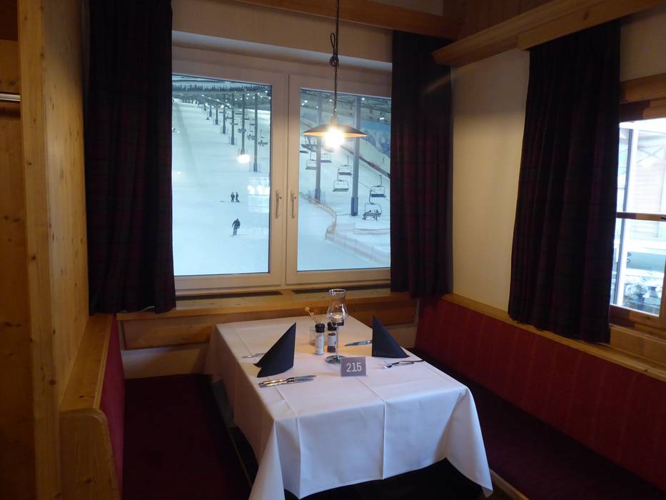 Am Fuße der Pisten der Skihalle alpincenter Hamburg-Wittenburg im 1. Stock