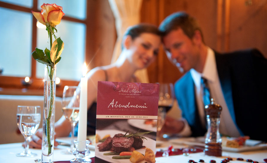 Das Kulinarium im "kleinsten Dorf Tirols" – wie das außergewöhnliche Hotelrestaurant im Hotel Alpina genannt wird – muss man erlebt haben. Das im Stil eines Tiroler Almdorfs angelegte Restaurant sprüht vor Tiroler Charme.