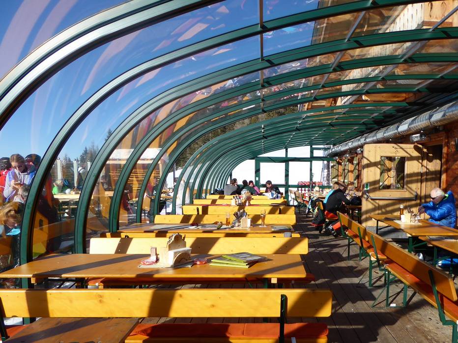 Auf der Rauchkopfhütte kann man auf 3 Terrassen die Sonne und das Panorama genießen. Wenn man früh genug dran ist, bekommt man auch noch einen Strandkorb oder Liegestuhl auf der Terrasse und kann es sich darin gut gehen lassen. Ein Wintergarten und Raum mit Hüttenatmosphäre ist ebenso vorhanden. Typisch österreichische Speisen stehen auf der Speisekarte. Diese wird regelmäßig kreativ weiterentwickelt mit frischen und qualitativ hochwertigen Produkten.