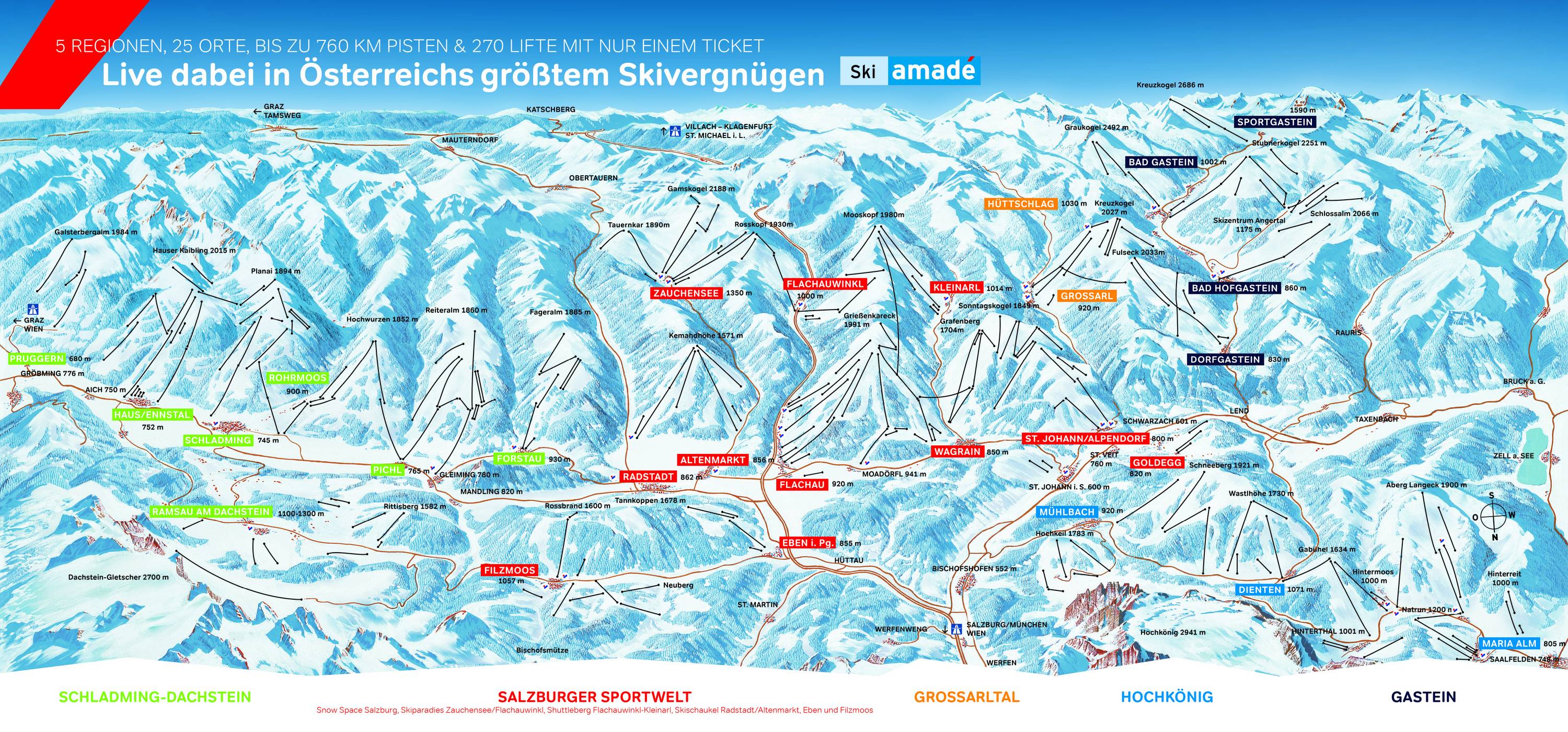 Pistenplan Zauchensee/Flachauwinkl Saison 2025/2026