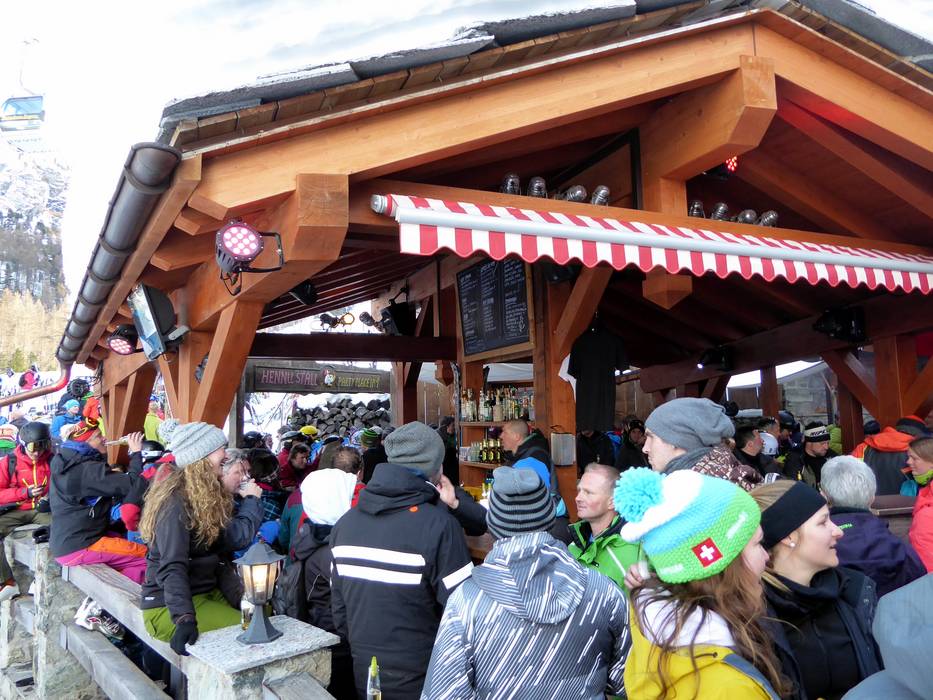 Hier beginnt die Party nach dem Skitag. Direkt an der Talabfahrt Blatten gelegen, legen hier jeden Tag DJs auf. Gute Laune und beste Stimmung sind garantiert.