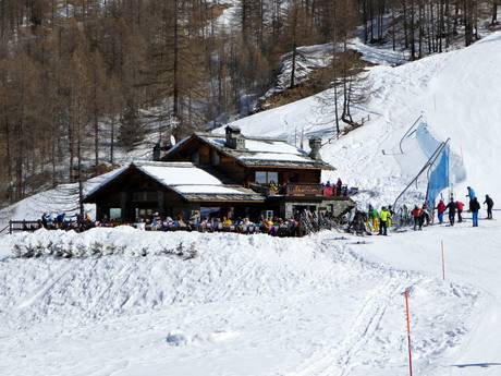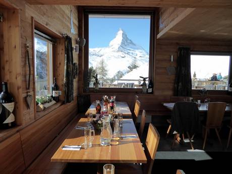 Im gesamten Skigebiet von Zermatt, Breuil-Cervinia und Valtournenche findet man gute Hütten und Restaurants zum Einkehren. Auf Zermatter Seite gibt es einige exklusive Hütten mit hervorragenden Speisen und Getränken. Im Gourmet-Führer GaultMillau sind einige Zermatter Hütten ebenfalls mit eingetragen und ausgezeichnet. Natürlich findet man auch urige Hütten, große Sonnenterrassen und Selbstbedienungsrestaurants an den Pisten verteilt. Die Skihütten in Italien bieten meist typische italienische Küche. Das Preisniveau ist in Italien niedriger.