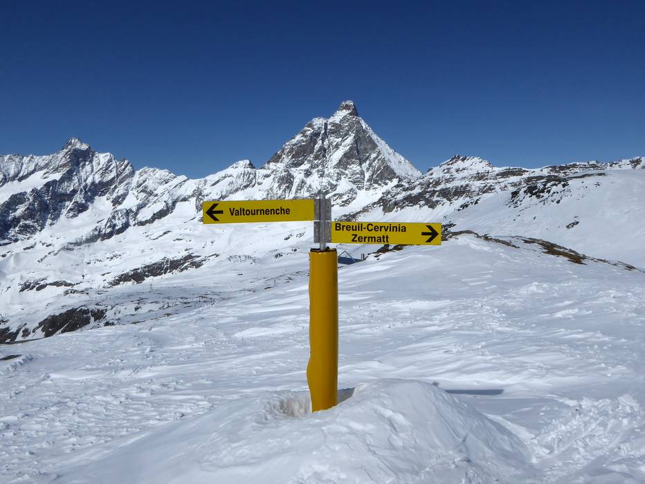Orientierung (Pistenplan, Informationstafeln, Ausschilderung) und Sicherheit im Skigebiet Zermatt/Breuil-Cervinia/Valtournenche – Matterhorn