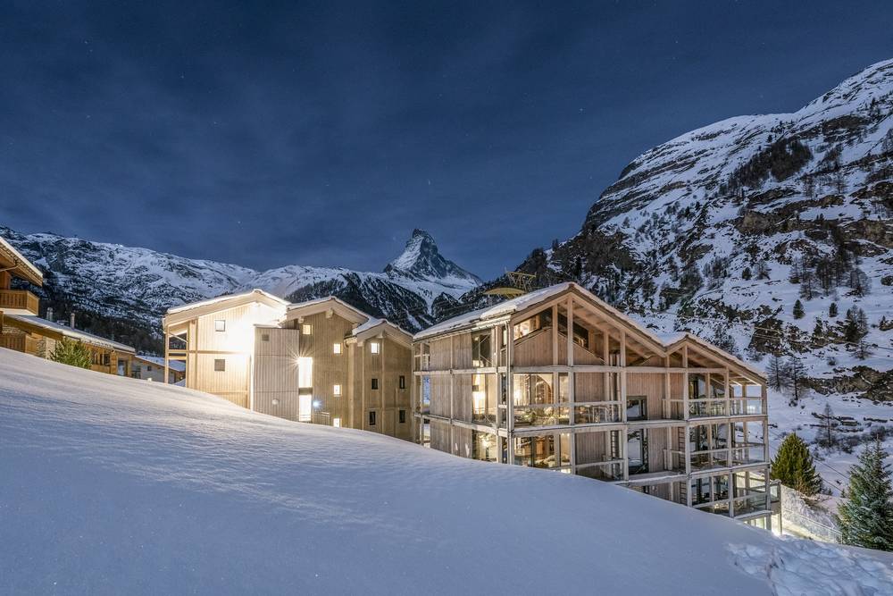 Die Zimmer – ein Erlebnis: 30 Design-Doppel- und Familienzimmer sowie Suiten mit bodentiefen Panoramafenstern, eröffnen den Blick auf die Walliser Bergwelt, - die Meisten davon mit Matterhornblick oder Dorfblick.