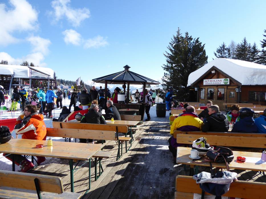 Das Atrium bietet Après-Ski mitten im Skigebiet Zettersfeld. Es stehen Sonnenliegen und eine kleine Bar zur Verfügung. Hier kann man den Skitag wunderbar ausklingen lassen, bevor es mit der Gondelbahn ins Tal geht.
