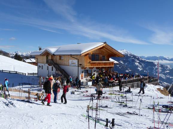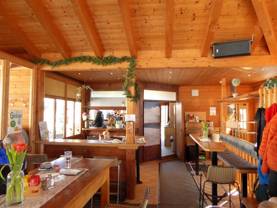 Die höchste Einkehrmöglichkeit im Skigebiet Zettersfeld bietet einen herrlichen Blick auf die Lienzer Dolomiten, den Hochstein und die Sonnenstadt Lienz. Die Sonnenterrasse mit Liegestühlen lockt bei schönem Wetter. Man kann hier oben genüsslich Prosecco mit täglich neu ausgewählten Schmankerln genießen.
