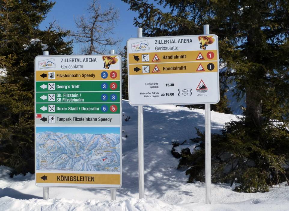 Orientierung (Pistenplan, Informationstafeln, Ausschilderung) und Sicherheit im Skigebiet Zillertal Arena – Zell am Ziller/Gerlos/Königsleiten/Hochkrimml